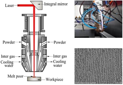 (2)纳米增强复合涂层激光熔覆快速制造技术。通过界定非晶纳米晶原位生成的临界工艺条件,实现了涂层性能梯度分布及纳米、非晶和位错三重强化机制的统一。突破了涂层均匀化成形控制装置和加工设备的集成,攻克了涂层大面积均匀制造难题。