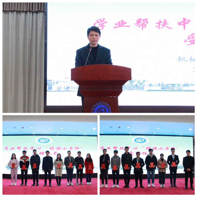 项延训为学业帮扶中心“授课小老师”颁发了聘书并做总结讲话。他希望接受帮扶的同学要树立学习信心,掌握好的学习方法,积极发挥学习主动性和自觉性;希望“授课小老师”能继续发扬助人为乐的精神,在助人的同时实现自助;希望辅导员老师要进一步“围绕学生、关照学生、服务学生”,不仅要关注学生的身心健康,还要关心学生的学业发展,总结好的助学经验,为社会培养出更多合格的人才。