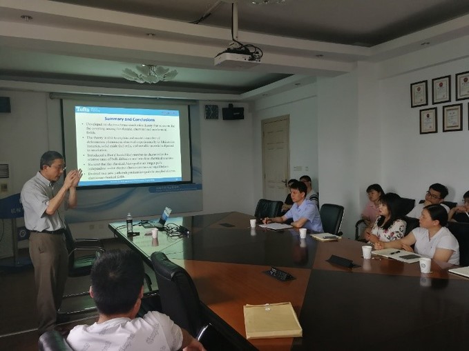 6月21号上午,美国塔夫茨大学(Tufts of University)工程学院院长曲建民教授来我校访问,并作了题为“Electro-Chemo-Mechanics of Solids and Its Applications to Fuel Cells and Batteries”的学术报告。报告会由机动学院党委书记、院长(兼)项延训教授主持,机动学院二十余名师生参加了报告会。