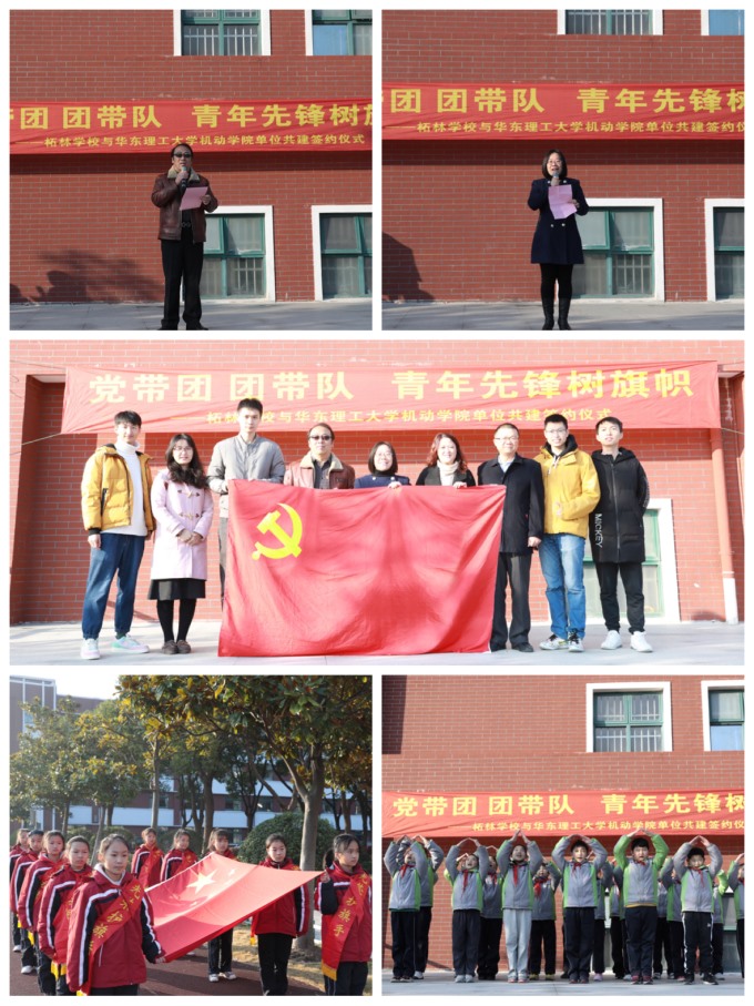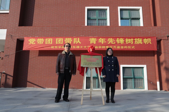 邵根初在开场致辞中表示,柘林学校将尽力为华理机动学院的学生党员和志愿者搭建一个党性锻炼和志愿服务平台,希望学院的学生党员和志愿者能够充分发挥专业优势,助力实现党组织之间的“资源共享、优势互补、互利双赢”,为柘林学校学生拓展学习兴趣、为柘林学校老师补充教学资源,展现华理学子风采。随后,杨倩与邵根初签订了结对共建协议并共同为实践基地揭牌。