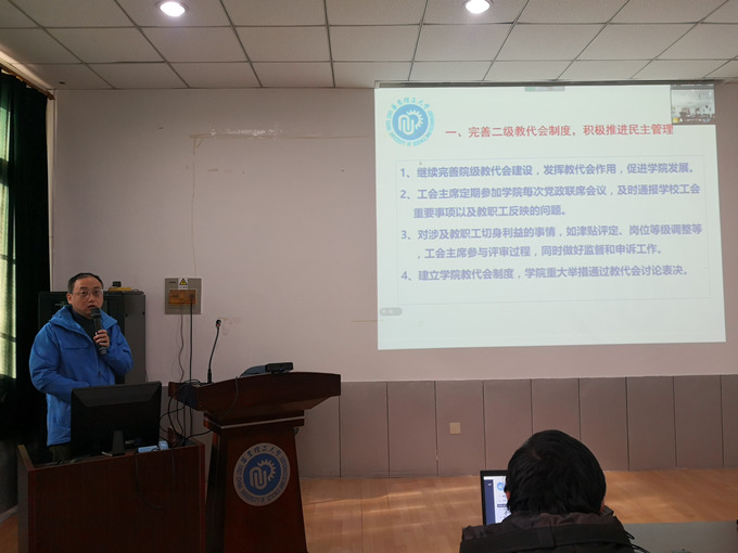 1月15日,yl23455永利集团全院教职工大会暨第五届第一次教代会、工代会在实验十楼三楼多媒体教室召开。机动学院党政领导班子、双代会代表、特邀代表涂善东院士等现场参加,其余教职工线上参加。会议由机动学院工会副主席侯峰主持。