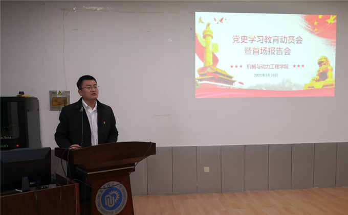 为深入学习贯彻习近平总书记在党史学习教育动员大会上的重要讲话精神,按照学校部署安排,3月16日下午,机动学院在徐汇校区实验10楼301室召开党史学习教育动员会暨首场报告会。马克思主义学院党委副书记、副院长邱卫东副教授受邀作了题为“讲好百年来中国共产党推进社会主义的故事”专题辅导报告,机动学院全体教职工参加。报告会由机动学院党委书记杨强主持。