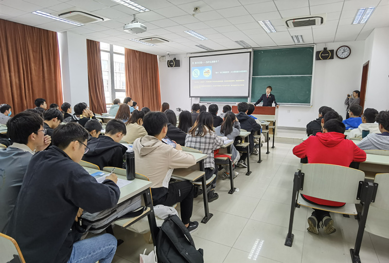 马淑娟结合近年来校园发生的电信网络诈骗真实案例和常见的诈骗方式,以案说法,深入浅出地讲解了电信诈骗案件发生的特点和手段,全面介绍了开展“断卡”行动的具体内容和重要意义,告诉同学们应如何防范电信网络诈骗。顾寅春针对被诈骗后的应急处置、报案流程、“涉卡”犯罪法律后果等内容向同学们进行了详细讲解,并在讲座中与他们积极互动,现场气氛非常活跃。