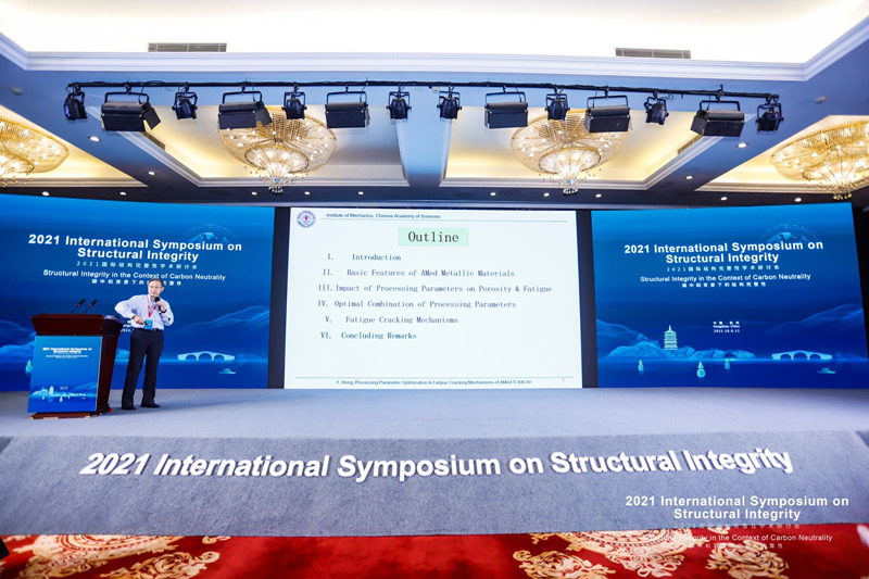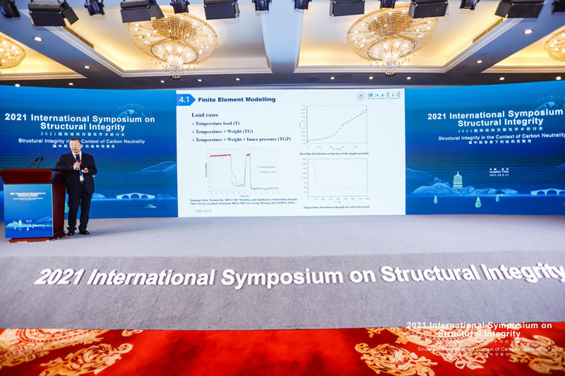 开幕日,会议邀请了13名国际结构完整性领域知名专家做邀请报告,包括中国科学院院士、北京理工大学方岱宁教授题为“Fracture strength behaviors of ultra-high-temperature materials”的报告,美国工程院院士、加州大学伯克利分校Robert O. Ritchie教授题为“Mechanisms of fracture and damage-tolerance in new metallic alloys”的报告,中国科学院院士、南京航空航天大学郭万林教授题为“Fatigue fracture of materials and structures”的报告,Int J Pres Ves Pip主编、美国密西根大学Pingsha Dong教授题为“Challenges and technology enablers for design and manufacture of multi-materials lightweight structures for achieving carbon neutrality”的报告,美国内布拉斯加大学林肯分校Jian Wang教授题为“Multiscale understanding of plasticity of nanoscale Al-Al2Cu eutectic alloys”的报告,美国马里兰大学Chunsheng Wang教授题为“Electrolytes for high energy Li-ion and Li metal batteries”的报告,Ultrasonics主编、香港理工大学苏众庆教授题为“Structural integrity monitoring and enhancement using additively manufactured sensors”的报告,浙江大学郑津洋教授题为“State of the art and knowledge gaps in storage of high pressure gaseous hydrogen”的报告,中国特种设备检验研究院沈功田研究员题为“Acoustic emission testing—a practical technique for evaluating the structural integrity of pressure vessels”的报告,Fatigue Fract Eng Mater Struct主编、中国科学院力学研究所洪友士教授题为“Processing parameter optimization and fatigue cracking mechanism of actively manufactured Ti-6Al-4V”的报告,英国克兰菲尔德大学Ali Mehmanparast博士题为“Offshore wind energy for a green industrial revolution: Structural integrity challenges and opportunities”的报告,英国诺丁汉大学Wei Sun教授题为“Analysis and date-driven design of quasi-disordered FCC lattice metamaterials”的报告,浙江工业大学高增梁教授题为“Structural integrity assessment of reactor pressure vessel under severe conditions”的报告等。
