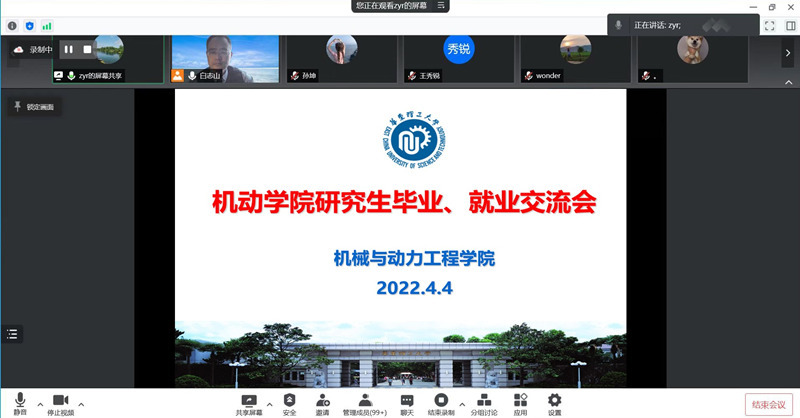 为保障疫情期间2022届机动学院研究生毕业就业工作的顺利开展,机动学院于4月4日召开了线上研究生毕业就业交流会。机动学院院长张显程,副书记李煜佳,负责研究生培养、学位、就业的老师以及全体研究生毕业生等220余人参会。会议由机动学院副院长白志山主持。