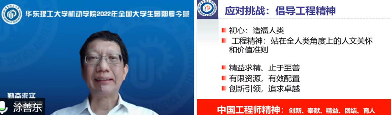 涂善东院士在“改变世界的机械与动力工程”的报告中,由浅入深地讲述了近现代机械与动力工程学科的发展历程和发展趋势,勉励同学勇敢应对挑战,倡导工程师精神、造福社会、恪守工程伦理和职业道德。