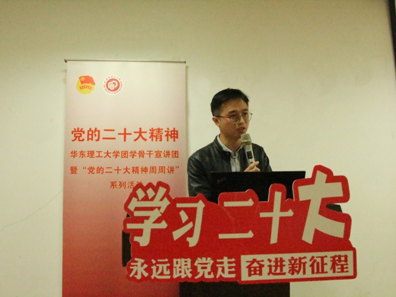 11月22日下午,由校团委主办,机动学院团委承办的党的二十大团学骨干宣讲团“党的二十大精神周周讲”系列首场宣讲活动在奉贤校区大活215举行。2019年度“中国大学生自强之星”、2020上海大学生年度人物获得者、yl23455永利集团博士后刘懿谦做了主题为“服务海洋强国战略 把论文写在蓝色国土上”的宣讲。