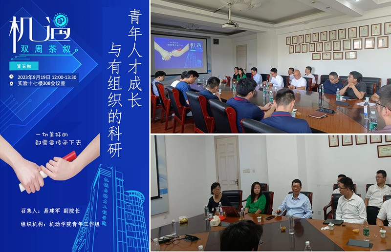 作为机动学院的品牌学术沙龙,“机·遇 双周茶叙”青年教师成长沙龙活动于本学期持续推进。9月19日中午,由机动学院青年教师代表杨雪晶、温建锋、沙金等作为召集人组织开展了主题为“青年人才成长与有组织的科研”的沙龙活动,中国工程院院士涂善东出席沙龙并讲话,活动吸引了学院近30名教师参加。