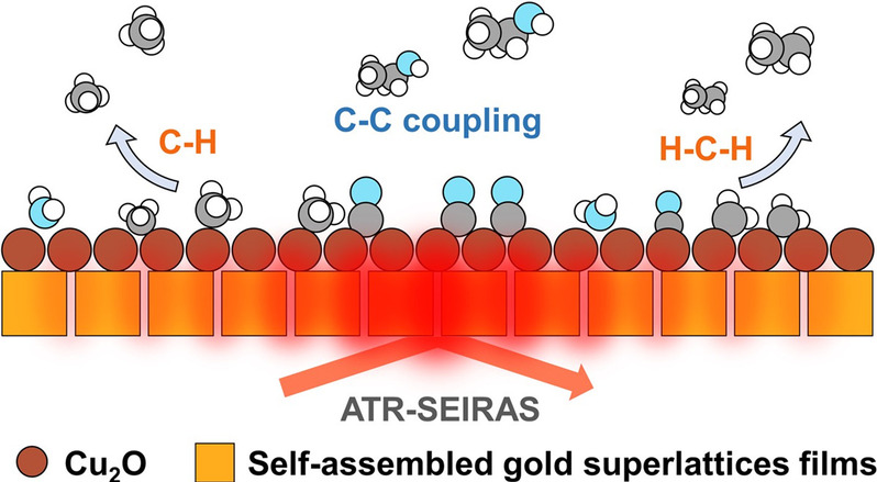 图片说明:自组装金超晶格薄膜在Cu基催化剂上CO电还原C-C耦合的反应机理