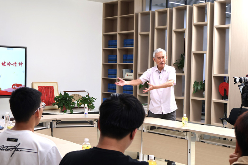 6月18日下午,机动学院奉贤校区本科生党支部在大学生活动中心107室开展主题党日活动。活动邀请学院退休老教师、曾全面参与“652工程”建设的蔡仁良、严思宏两位老先生走进奉贤园区,给学院思政教师和青年学生同上“学习652历史,传承黄坡岭精神”主题党课。各年级辅导员、支部学生党员和入党积极分子代表等20余人参加活动。