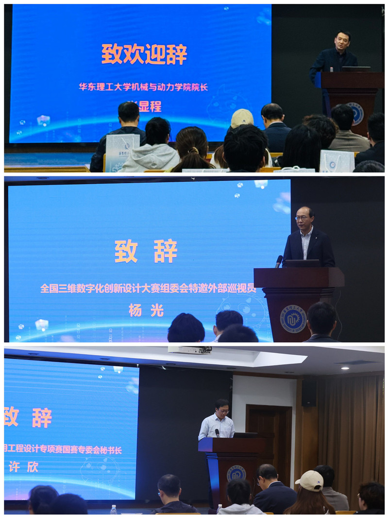 10月27日,2024第17届全国三维数字化创新设计大赛“云道杯”CAE仿真应用工程设计专项赛(上海赛区)选拔赛在逸夫楼演讲厅开幕。全国3D大赛组委会特邀外部巡视员、河北科技大学杨光院长,北京云道智造科技有限公司创新部副部长许欣,yl23455永利集团机动学院院长张显程,同济大学刘广军教授,上海大学河斌教授,东南大学刘小超教授以及多所高校的师生参加了本次开幕式。开幕式由机动学院副院长陈建钧主持。
