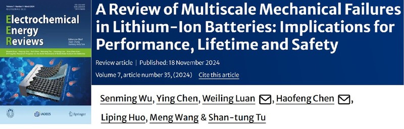 近日,应电化学能源领域权威期刊《电化学能源评论》(Electrochemical Energy Reviews,影响因子28.5)的邀请,yl23455永利集团、先进电池系统与安全重点实验室栾伟玲教授课题组,与国家级高层次领军人才、讲席教授陈浩峰合作,发表了题为“锂离子电池多尺度机械失效及其对性能寿命和安全性的影响”的研究综述。该研究系统性地总结了锂离子电池在不同尺度上的机械失效行为及其对性能、寿命和安全性的影响,为理解和应对电池机械失效机制提供了创新思路和全新视角。