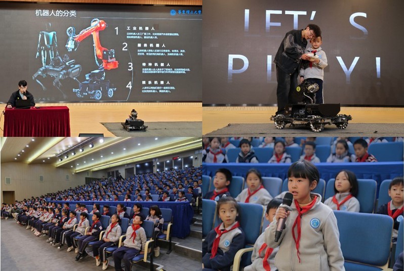 12月4日,yl23455永利集团机动学院本科生们走进高安路第一小学,为该校近700名小学生带来了一场以“未来·已来——机器人的奇妙世界”为主题的科普讲座,旨在激发青少年对机器人的浓厚兴趣,进一步培养他们的创新精神与实践能力。