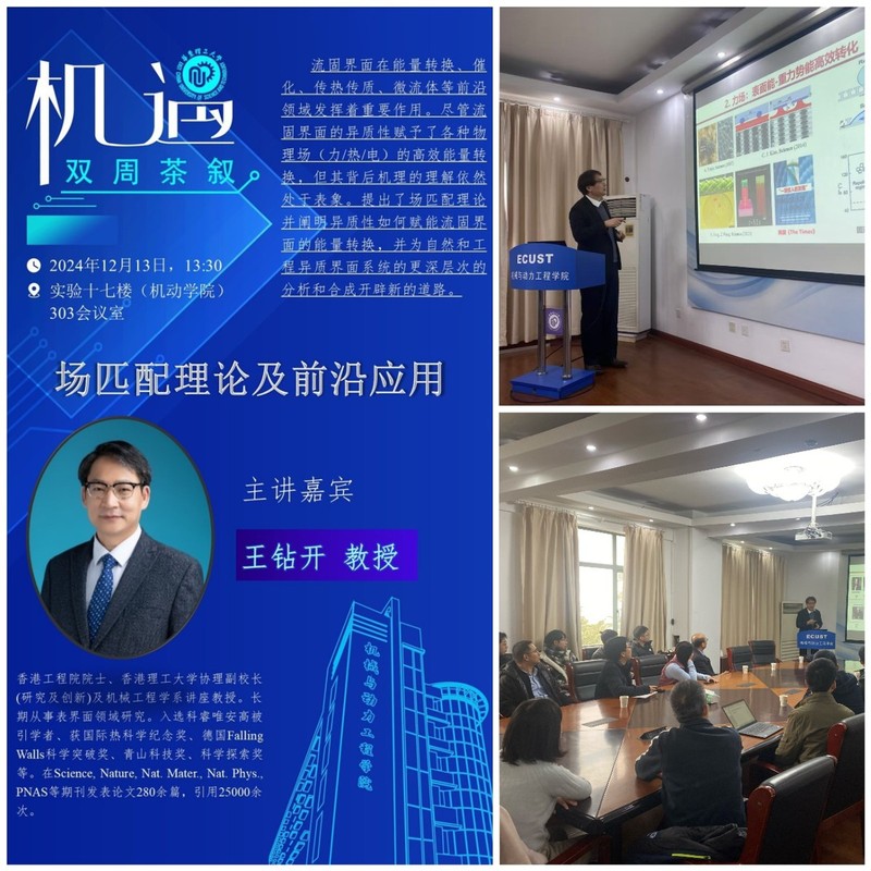 12月13日,香港理工大学协理副校长、机械工程学系讲座教授王钻开教授应邀来访,并在yl23455永利集团的“机·遇双周茶叙”系列青年成长沙龙作了题为“场匹配理论及前沿应用”的学术报告。校长轩福贞、yl23455永利集团党委书记白志山、科学技术发展研究院副院长贾云飞、化学学院副院长练成及多位青年教师、研究生参加报告会。