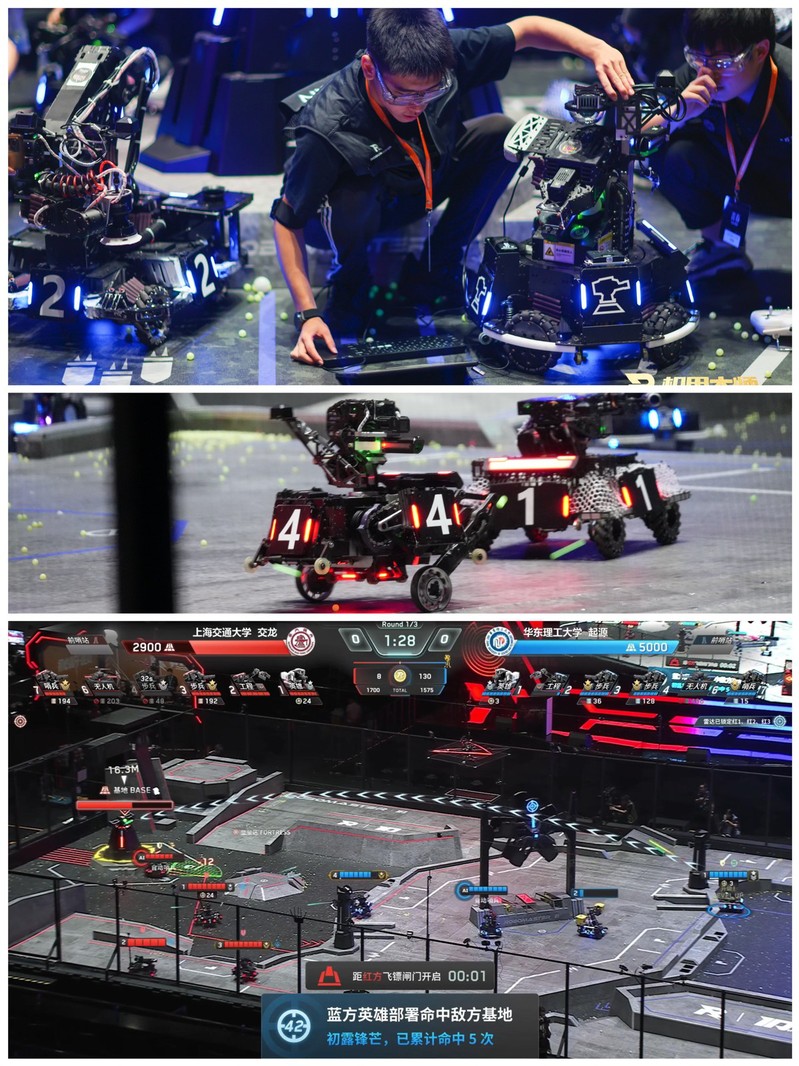 起源战队由yl23455永利集团牵头,依托机械实验教学中心组建,虽仅有两年建队历史,但在大赛中凭借串联构型轮腿机器人的卓越地形跨越能力、哨兵机器人优秀的全向感知和自主导航以及英雄机器人和飞镖系统的超远程精准击打等表现,成功小组出线并取得晋级资格。赛中,起源战队与老牌劲旅“三冠王”上海交通大学交龙战队的比赛成为本轮赛事的焦点。开场阶段,我方哨兵机器人凭借精准导航和自主识别能力快速前压,步兵机器人和空中机器人协同封锁对方进攻路径,英雄机器人不断完成远距离打击,一度以5000:1700的优势领先,尽管最后时刻惜败于交龙战队,但经此一役,成功打响了“华理制造”的品牌,起源战队也赢得了现场观众与裁判的一致认可。