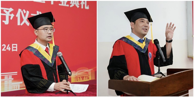 在观看了学校毕业典礼直播后,李春忠和学院老师们一起为参加毕业典礼的毕业生拨穗正冠,赠送毕业卷轴。