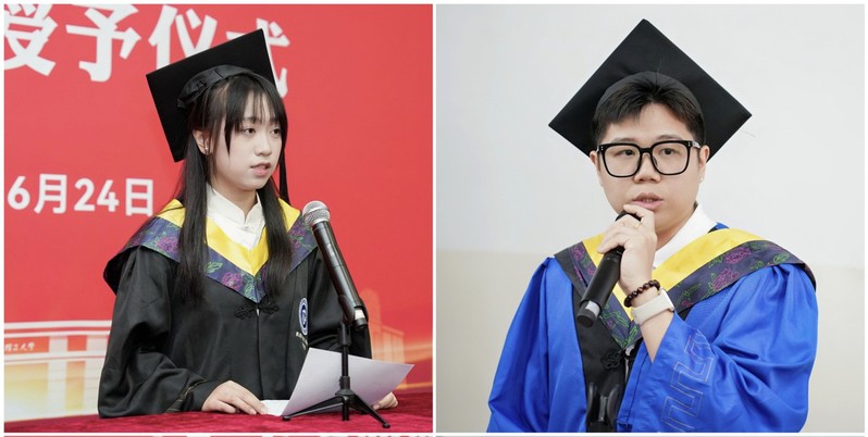 本科生和研究生毕业生代表张译月和梁晗分享了他们的成长感悟。张译月讲述了服务集体的党员担当,表示将在专业领域深耕细作;梁晗则表达了建设家乡、专攻新能源技术研发的决心。他们共同承诺,将弘扬华理精神,把青春奋斗融入党和人民事业,以实际行动服务国家,为教育强国、科技强国建设贡献智慧与力量。
