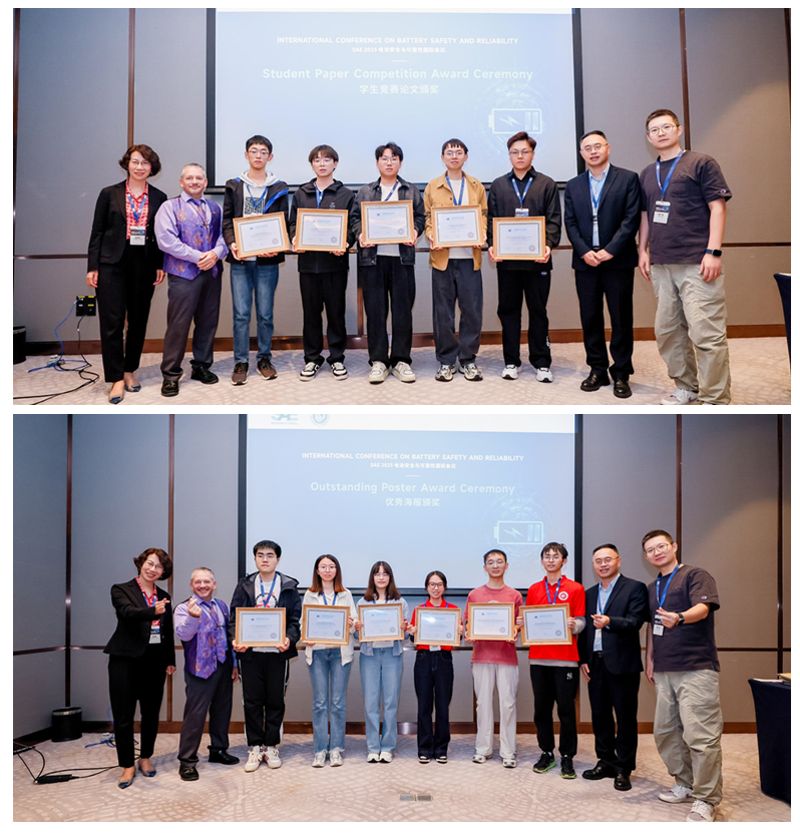 大会共设置5个专题分会场,近百位专家与青年学者作主旨或学术报告,方向涵盖电池安全管理、风险评估、材料与结构创新、热失控防控、寿命预测与可靠性建模等。大会同期还举办了优秀学生论文竞赛和论文海报评选活动,大会联合执行主席——SAE电池标准委员会主席Brian Engle、yl23455永利集团陈浩峰教授,同济大学韩广帅副教授担任评审专家。来自yl23455永利集团、重庆大学、西安交通大学、上海交通大学、北京理工大学等高校的14位研究生获奖,充分展现了青年学者的科研潜力与创新活力。