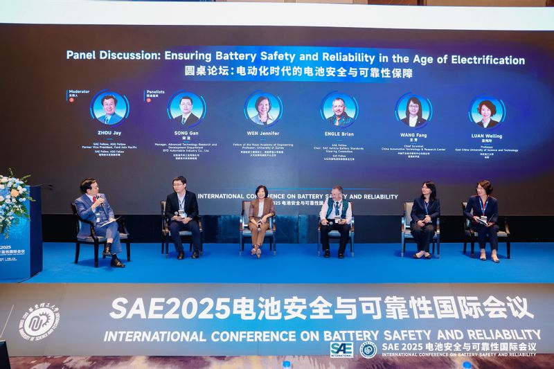 圆桌论坛以“电动化时代的电池安全与可靠性保障”为主题,由Jay Zhou博士主持。与会嘉宾围绕电池生命周期风险、故障检测与标准适配等方面展开讨论。大家认为,当前安全瓶颈主要源于跨阶段风险识别与数据透明度不足,应以多尺度传感与模型融合实现早期诊断,建立“预测性安全管理”体系。同时,行业需建设共享验证平台,以数据驱动标准、以标准引领创新,形成贯穿设计—制造—使用—回收的安全闭环。