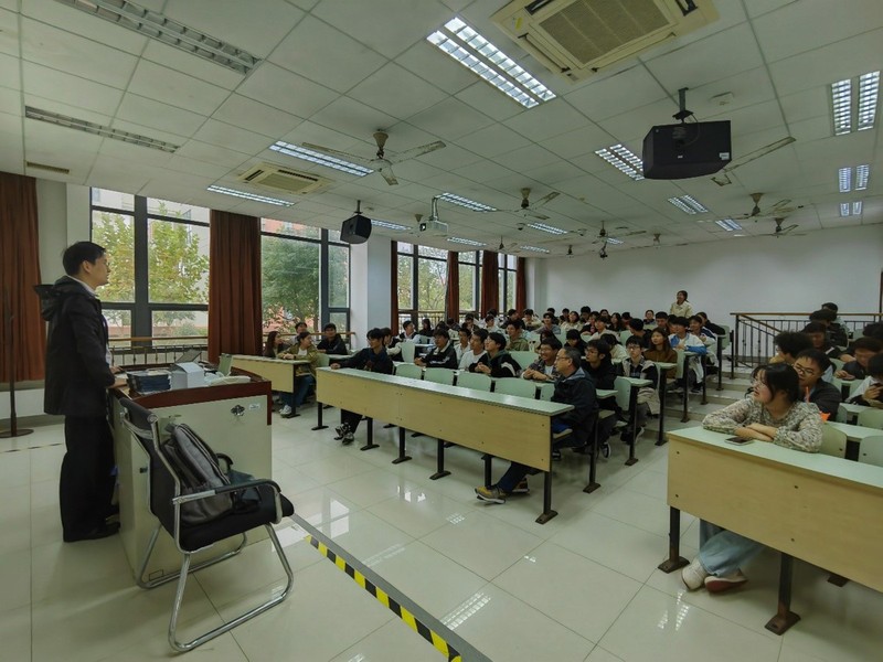 为进一步加强学校与新生之间的联系,帮助2025级同学尽快适应大学生活、深入了解学校情况,提升招生宣传工作的实际效果,11月5日,机动学院在奉贤校区D106教室举办了面向2025级安徽、云南籍新生的见面交流会。来自全校不同学院的近70名安徽、云南籍新生,与机动学院副院长陈建钧老师、安徽招生联络人周先桃、云南招生联络人侯峰以及高年级学生代表们一起近距离交流,现场气氛热烈而温馨。