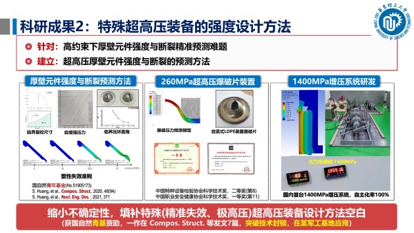 面向新能源储运、超高压工业、油气采集等国家重大前沿技术领域,针对特殊环境中的结构强度设计方法开展研究。长期关注超高压装备设计方法(压力容器、阀门、管道)、复杂承压系统合于使用评价方法(复合材料、多层结构)等。近年来,研发了设计压力1400 MPa超高压增压器,提出了超高压阀门自增强技术,成果服务于中广核、国核、中核等大型企业。该研究方向旨在服务国家需求,提供新方法、新技术、新装备。
